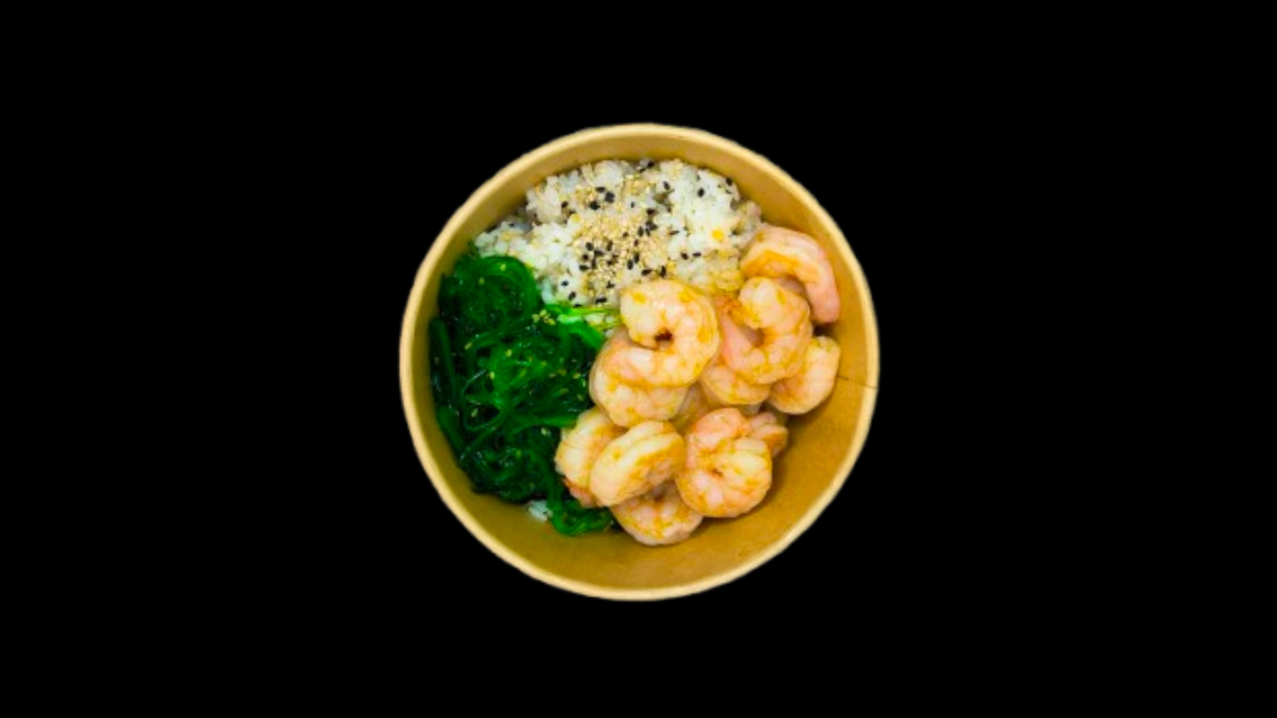 12 ks krevet (sojová omáčka, sezamový olej), 70 g goma wakame salát, 150 g sushi rýže (sezam, sezamový olej), extra sojová omáčka, sezam.
